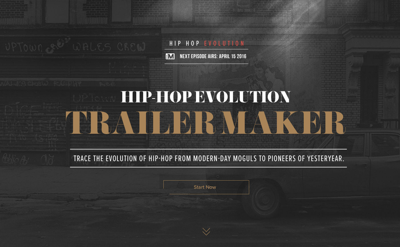 Hip-Hop Evolution is an Emmy Award-winning documentary series tracing the origins and growth of hip-hop culture. To promote its premiere on HBO (following its Hot Docs debut), I helped design an interactive marketing experience: a Buzzfeed-style quiz that generated personalized trailers for users based on their artistic and musical taste.